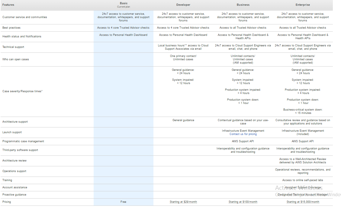 Whether your organization is new to AWS, or continuing to increase the adoption of AWS services as they develop applications and build business solutions, AWS support can provide a unique combination of tools and expertise to help you do amazing things with AWS. There are four support tiers available for your organization to consider. You can see the support details at https://aws.amazon.com/premiumsupport/.