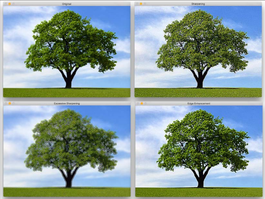 Applying the sharpening filter will sharpen the edges in the image. This filter is very useful when we want to enhance the edges of an image that's not crisp enough. Here are some images to give you an idea of what the image sharpening process looks like: