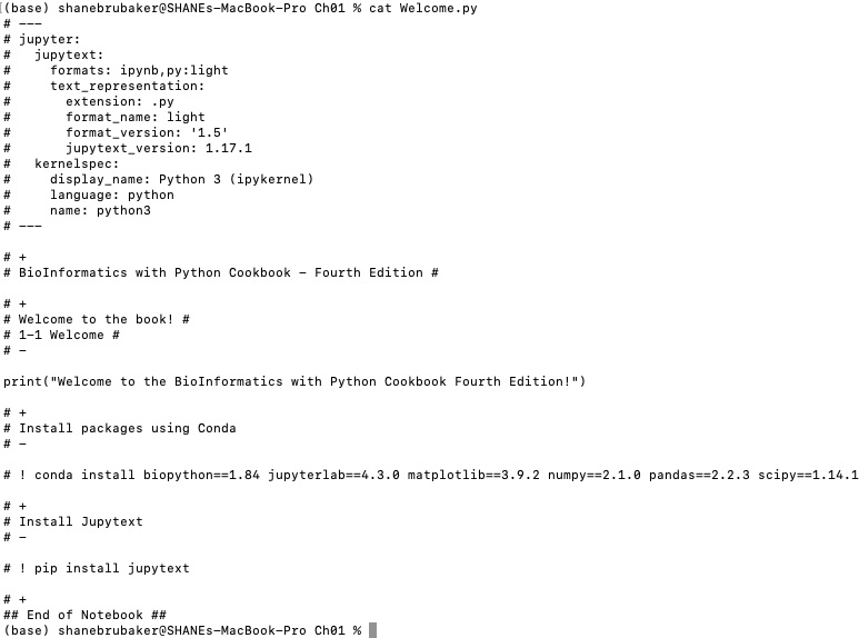 Figure 1.4 – The Welcome.py notebook in the Light format produced by Jupytext