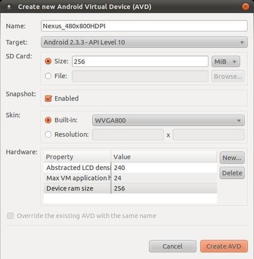Give a name to this new emulated device: Nexus_480x800HDPI.