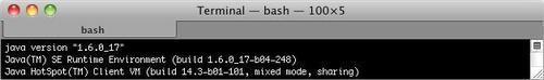 java –versionto check the installation. The result should be similar to the following screenshot. Check carefully to make sure that the version number corresponds to the version of the newly installed JDK:$ java –version