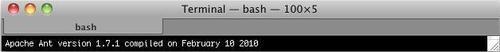 To compile projects from the command line, the Android SDK supports Ant,a Java-based build automation utility. Still in a terminal, ensure Ant is correctly installed:
