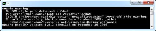 Now, check the Ant version to make sure it is properly working on Cygwin: