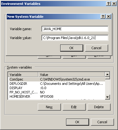 JAVA_HOMEfor the rest of the book.Create a new environmental variable named