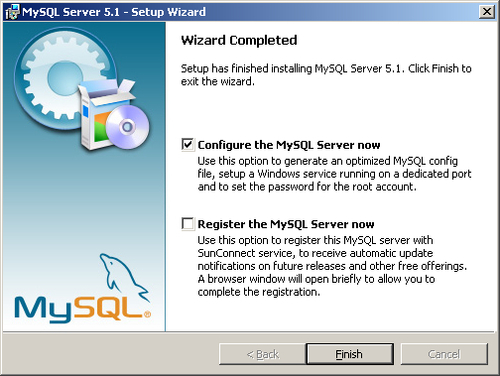 Once the installation is completed, make sure you check the Configure MySQL Server now option and click on Finish. This will bring up the MySQL configuration wizard.