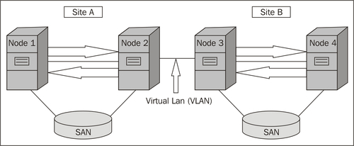 This was introduced in SQL Server 2005 clustering, and is also known as geographically dispersed failover or stretch cluster as it is designed to cope with the situation of a disaster at one site. This is how it functions: There are two sites at physically dispersed locations or sites or datacenters. If there is damage or failure at one site, the other will be up and running, providing a much more robust solution and high availability.
