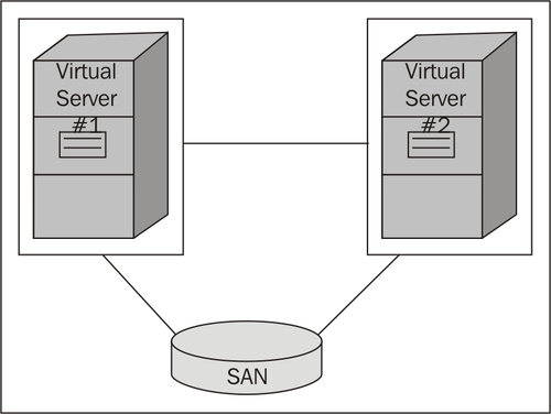 The cluster architecture forces us to use shared disk resources, as the disk to be used with the cluster environment should be accessible by any of the nodes. The shared disk plays a vital role in the cluster, because it stores not only data files, but logs, FILESTREAM files, and full-text index files. In case of failover, the preferred node will have access and ownership for the disk resource so that clients can access the database system without any interruption.