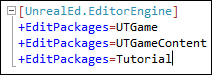 [UnrealEd.EditorEngine]and add the name of our own game package. It should now read+EditPackages=Tutorial.Note