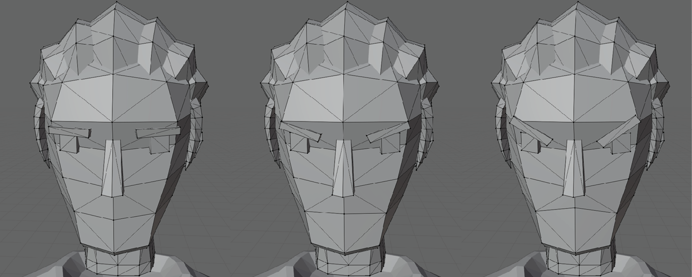 To get the idea of morph target animations, here’s a simple example. In Figure 10.1, three different weights of a morph target animation are shown: