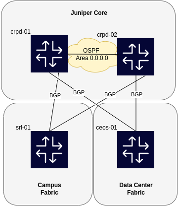 OSPF is used as the IGP between the data center and campus networks, for sharing routes between the different infrastructures. RFC 7938 advocates for BGP in large-scale data centers by highlighting its advantages in scalability, convergence, and flexibility, which are critical in those environments and where traditional IGPs such as OSPF might fall short. However, that level of complexity is not...
